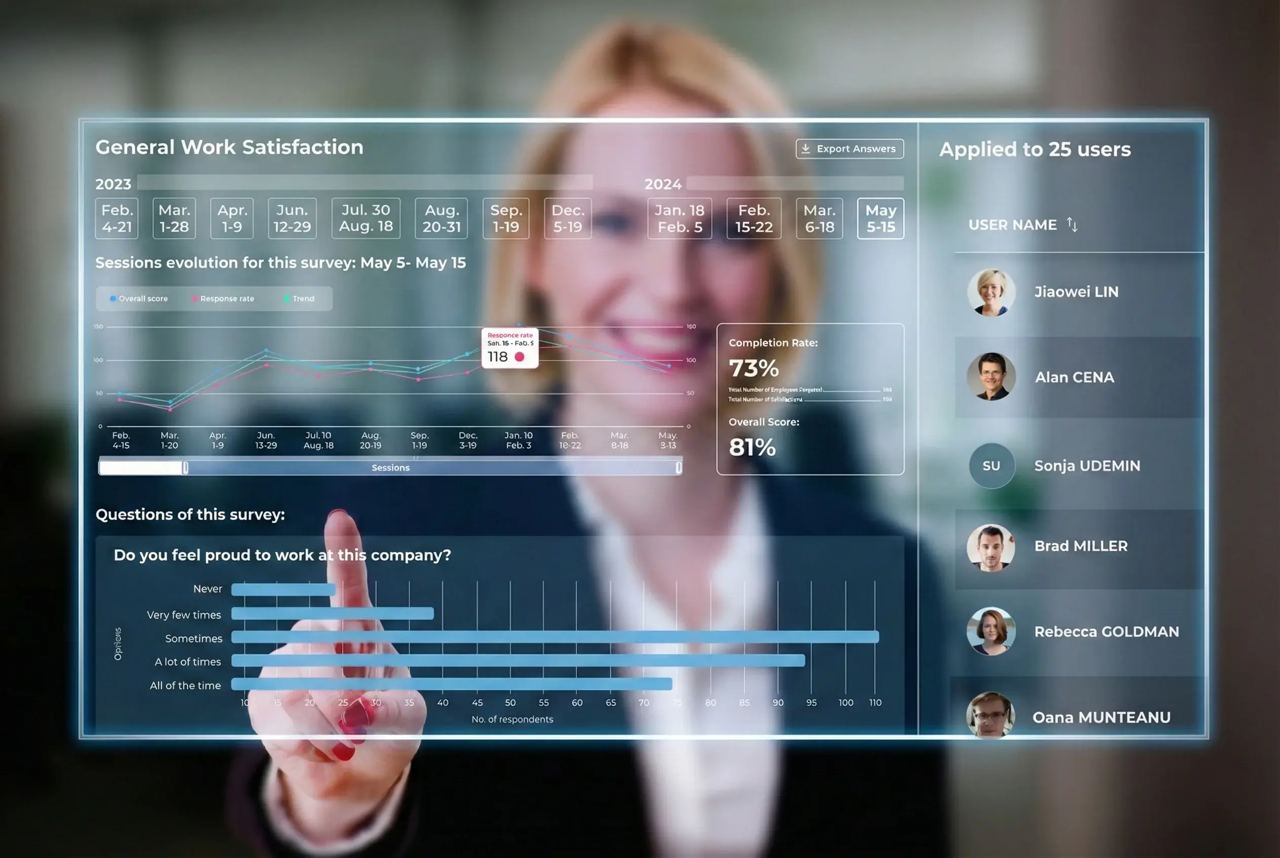 Mirro's company culture software provides comprehensive analytics that enable leaders to measure and analyze their company culture. It assesses employee sentiments, engagement levels, and alignment with company values, providing valuable insights to understand, measure, and improve the company culture.