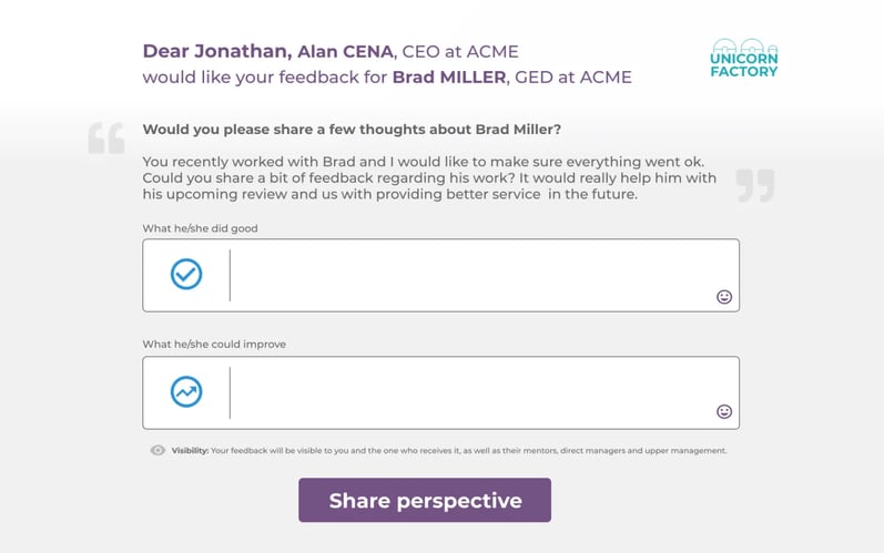 - External feedback givers do not need a Mirro account to share their opinion;